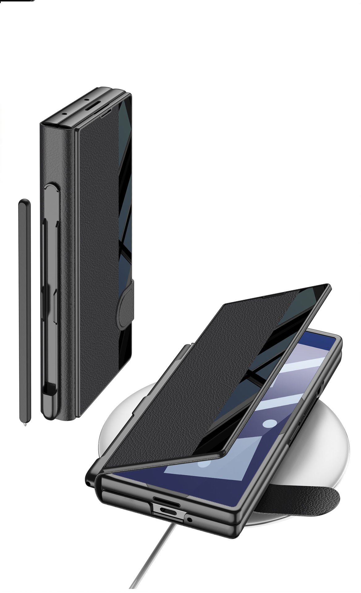 Geschikt voor Samsung Z Fold 7 mobiele telefoonhoes Zakelijk vouwscherm Z Fold 6 Flip Cover Film geïntegreerd met pensleuf lederen tas
