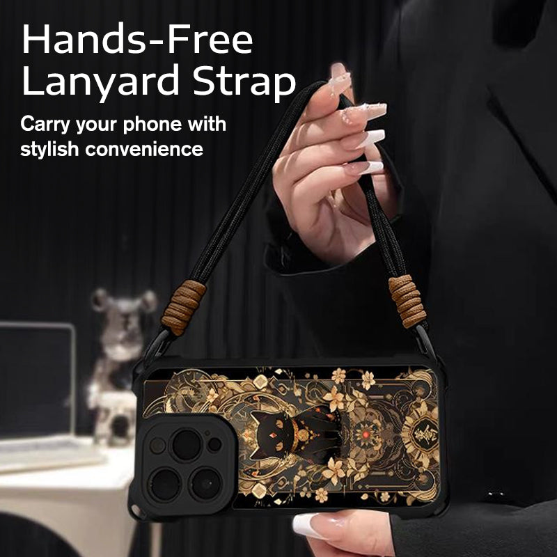Black Cat & Gold Pattern Phone Cover with Strap